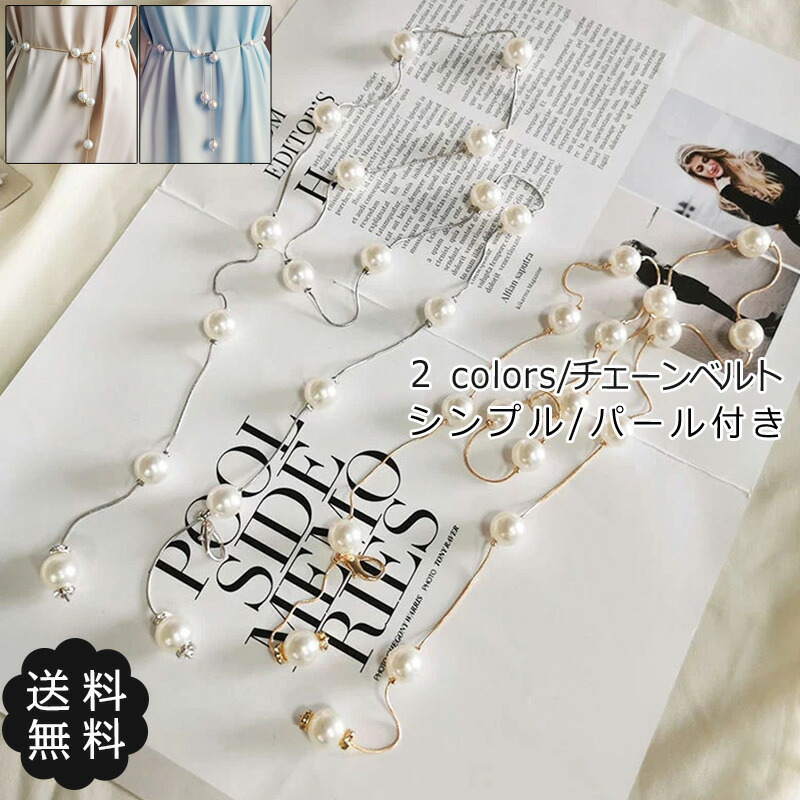 チェーンベルト レディース パール付き ウエストマーク ビジューベルト 細ベルト アクセサリー 服飾小物 結婚式 パーティー おしゃれ
