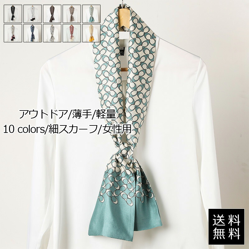 スカーフ レディース ネックスカーフ 細 スカーフ バンダナ バッグ用 首巻き シルク風 長方形 サテン 薄手 リボン アクセサリー 贈り物 ギフト 春夏秋 旅行