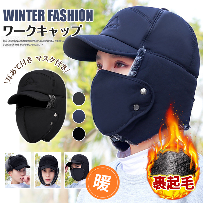 ワークキャップ 帽子 メンズ レディース 裹起毛 防寒帽子 防風 暖かい 耳あて付き フライトキャップ
