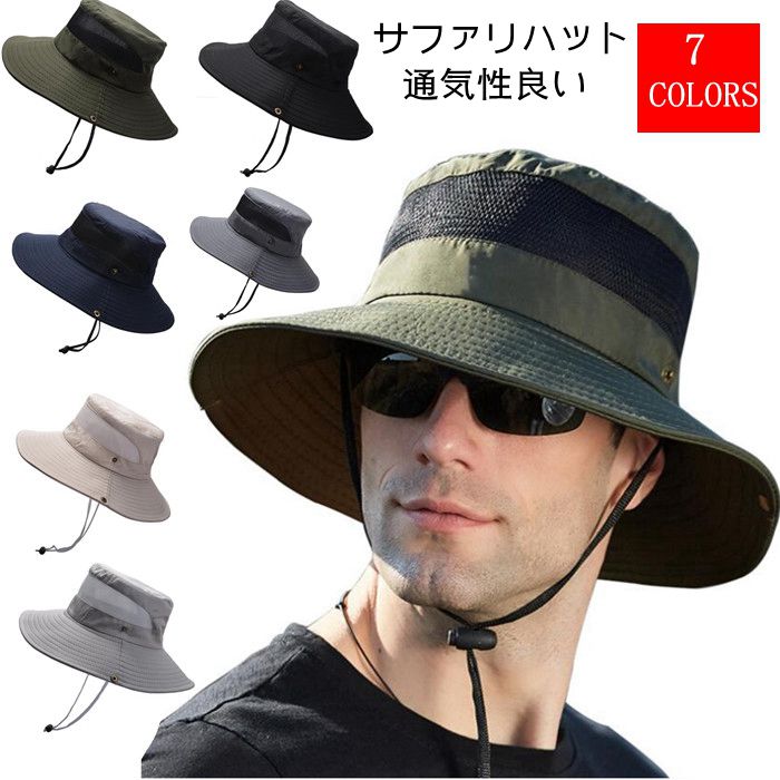 サファリハット メッシュ キャップ バケットハット 帽子 紫外線対策 日よけ あご紐付き つば広 アドベンチャー UVカット メンズ レディース ユニセックス 父の日 プレゼント ギフト