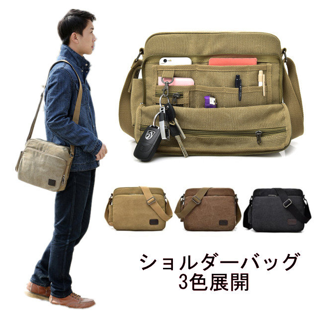 3色入荷ズックショルダーバッグ メンズ フラップ ショルダーバッグ 斜めがけバッグ 帆布 軽量 軽い ミニショルダー 男性用 シンプル ワンショルダーバッグ カジュアル 大人 学生 バッグ ギフト多機