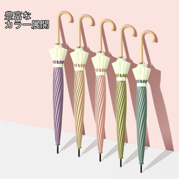 9色展開傘 晴雨兼用 24本骨 長傘 レディース メンズ ジャンプ式 レザーハンドル ストレートハンドル 軽量 軽い 雨傘 日傘 男女兼用 カット 紫外線カット 撥水 抗風 耐久 頑丈 豪雨対策