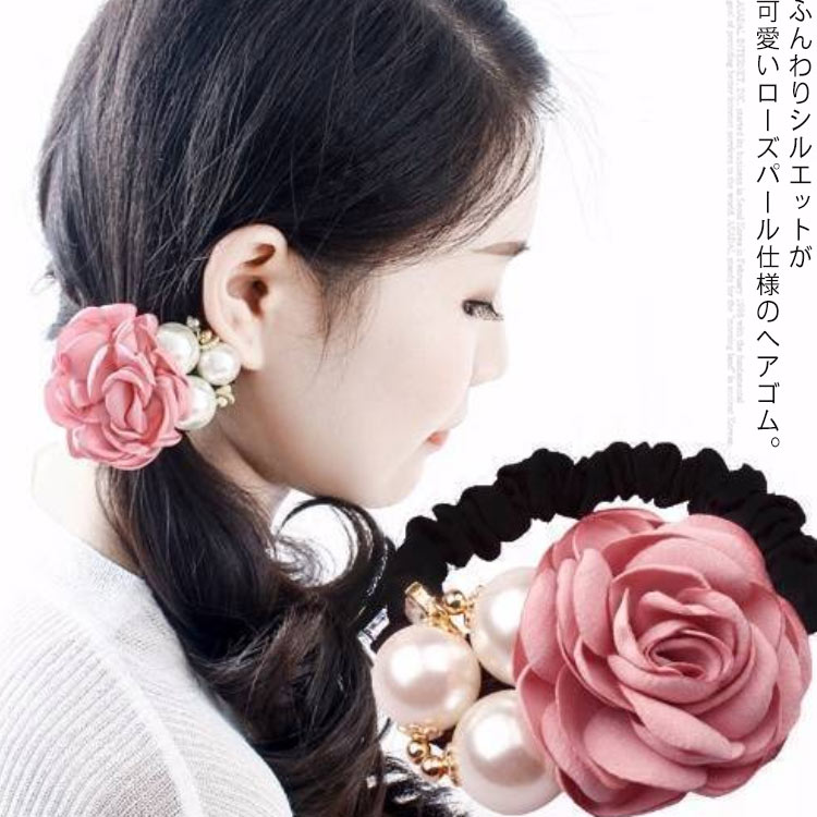 全6色 ヘアゴム 花 パール 大人っぽい フラワー ヘアポニー ローズ バラ ばら 薔薇 レディース オフィス シンプル ゴム まとめ髪 髪飾り 髪留め 結婚式 パーティ ヘッドアクセ ヘアアクセサリ