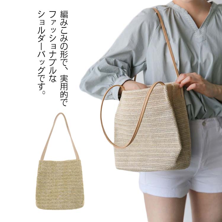 レディース バッグ 編みバッグ ショルダーバッグ かごバッグ 肩掛け 草編み風 きれいめ カジュアル おしゃれ 大容量 レトロ 春 夏 秋 通勤 お出かけ 旅行 デート 女子会 20代 30代 40代