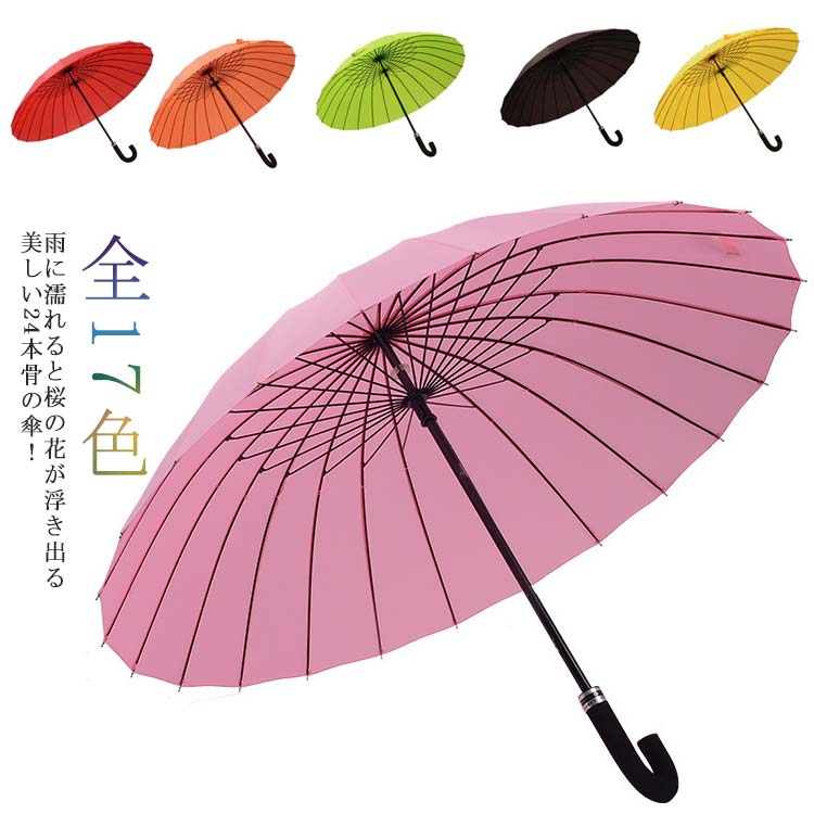 24本骨傘 浮き桜 雨傘 長傘 濡れると柄が浮き出る ジャンプ傘 丈夫 婦人傘 女性用 フラワー 桜 丈夫 UVカット 晴雨兼用