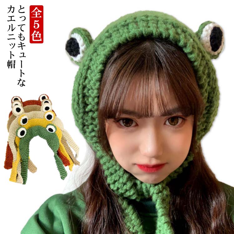 ニット帽 耳当て付き ニットハット おもしろい カエル 蛙 アニマル 耳あて ハロウィン衣装 おもしろグッズ