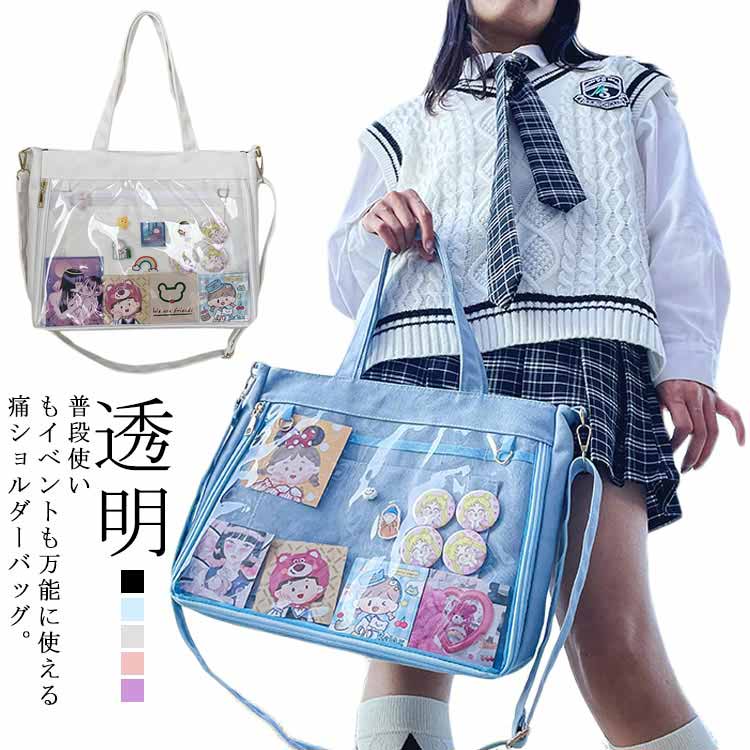 クリアバッグ ショルダーバッグ 見せバッグ 痛バッグ キャンバス トートバッグ 透明 ビニール 痛バッグ スクール 制服 JK カバン 高校生 女子 A4 おたく