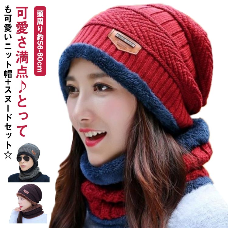 ニット帽 ワッチキャップ 耳あて ストレッチ スヌードとキュートなお揃いカラーセット☆ 防寒 暖かい お洒落 ニット 帽子 コーデには欠かせない