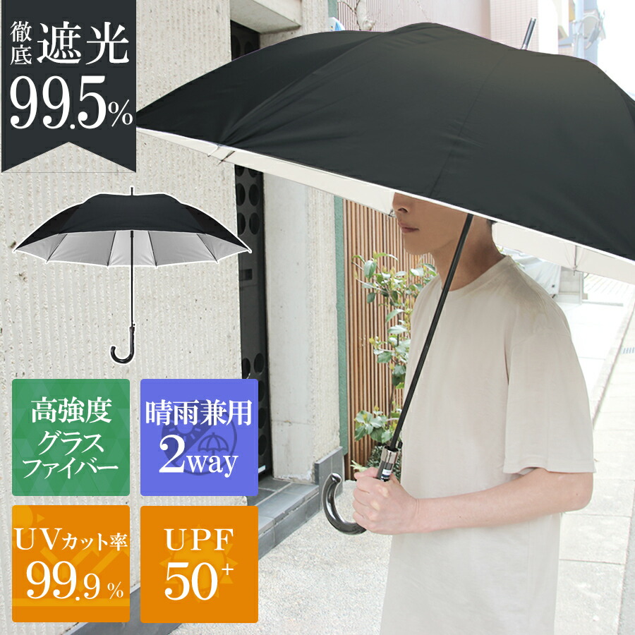 レビューを書くと保証期間延長 メンズ 日傘 長傘 大きい UPF50+ 雨傘 日傘 晴雨兼用 UVカット 遮光率99% 紫外線99% カット