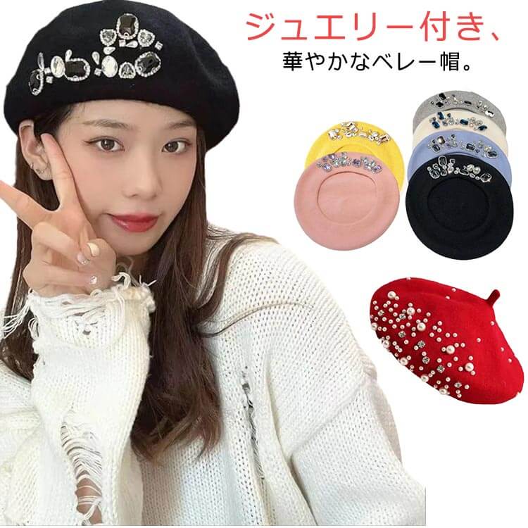 デラックス 帽子 ベレー帽子 ベレー帽 レディース 秋冬 暖かい ジュエリーパール付き フェミニン おしゃれ