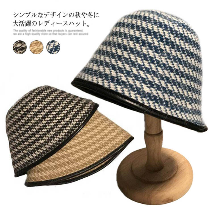 ハット レディース 帽子 バケットハット スウェード ハット 千鳥柄 人工スエード 女性 ファッション 個性的 カジュアル オシャレ旅行