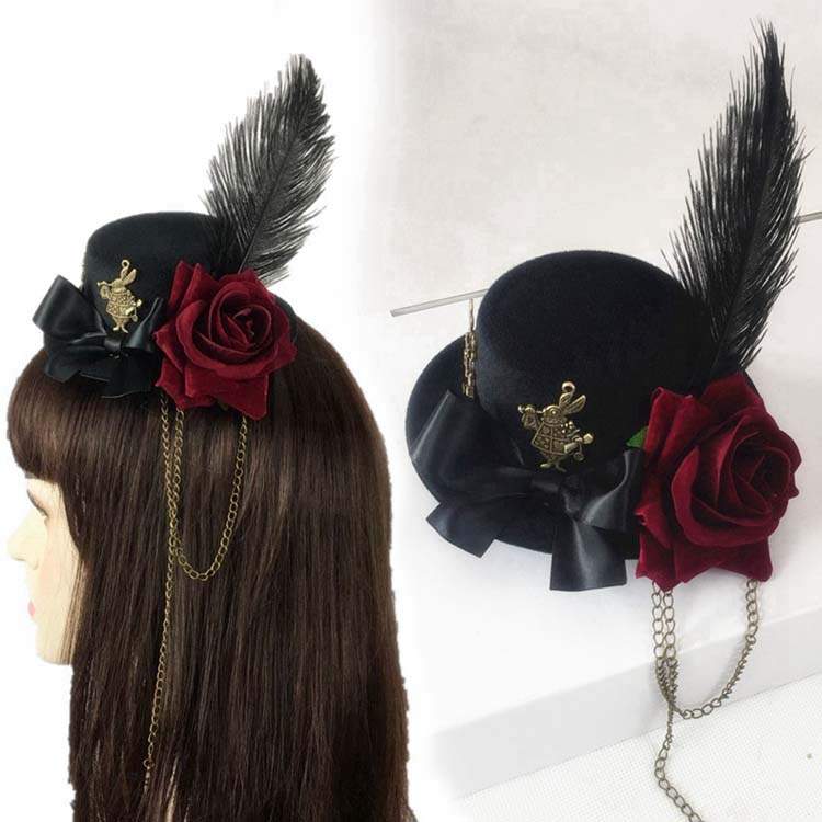 帽子 ヴィンテージ うさぎ 薔薇 スチームパンク レトロ 歯車 パーティー フォーマル コスプレ ローズクロス 贈り物 プレゼント ギフト ミニハット