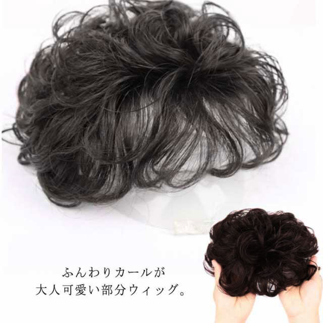 人毛 人毛100% ウィッグ お団子 パーマ ナチュラル つけ毛 ふんわり 自然 エクステ 簡単 シュシュ