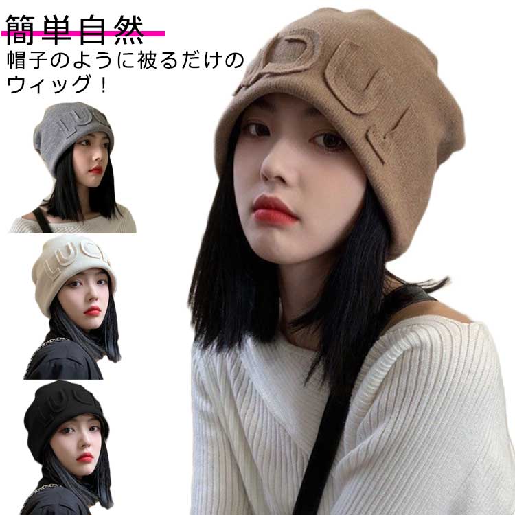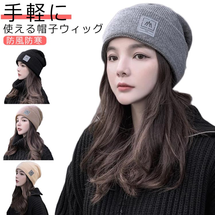 防風防寒 ウィッグ付き帽子 小顔効果 ニット あったか 自然 防風防寒バッグ 小物 ブランド雑貨 ウィッグ かつら つけ毛 ポイントウィッグ