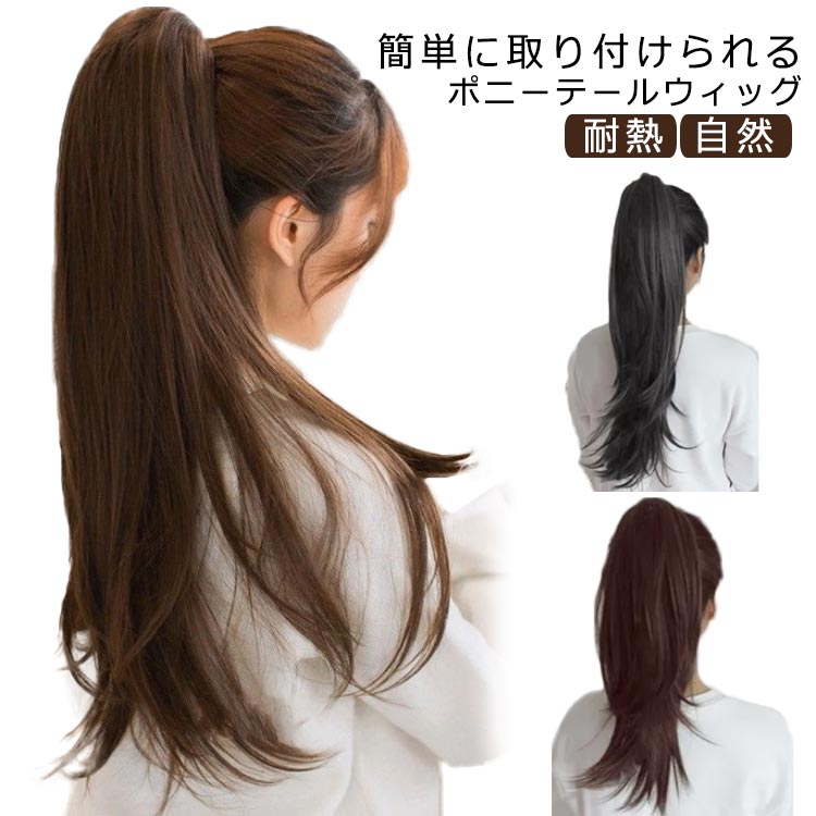 ポニーテール ウィッグ 自然 ロング ゆるふわ 部分 wig つけ毛 人気 ロング エクステ 巻き髪 ブラック ライトブラウン ダークブラウン ツインテール カール ウェーブ 浴衣 襟足 コスプレ 結