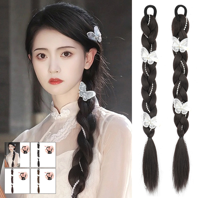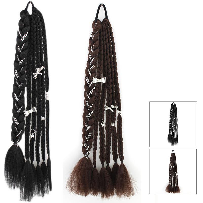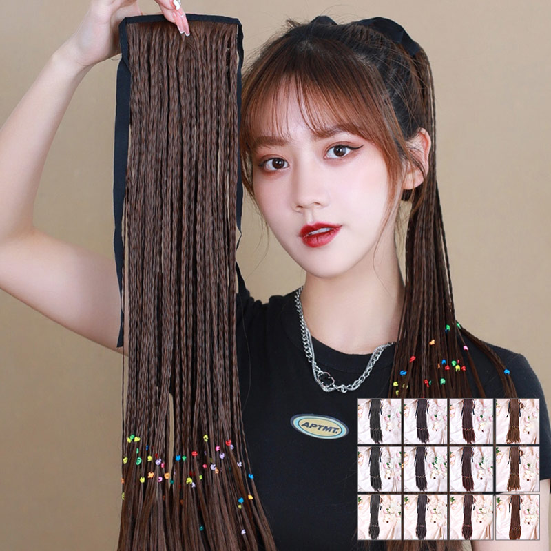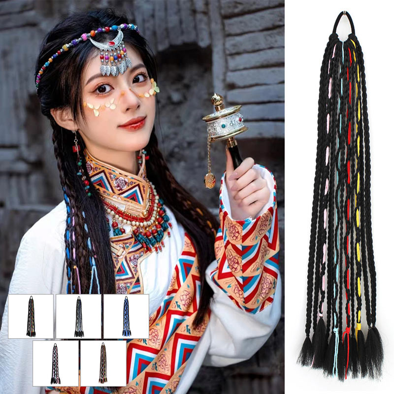 チベット式 三つ編み 女性 ウィッグ ヘアアクセサリー ヘアゴム 大人 子供 キッズ ガールズ 毛束 ハーフウィッグ ワンタッチ エクステ