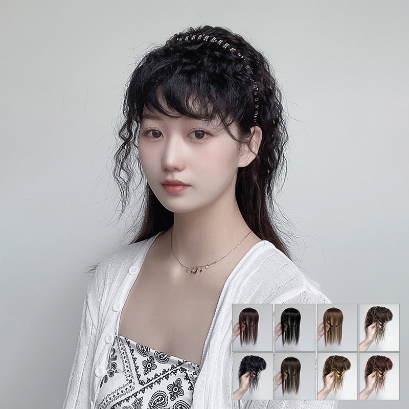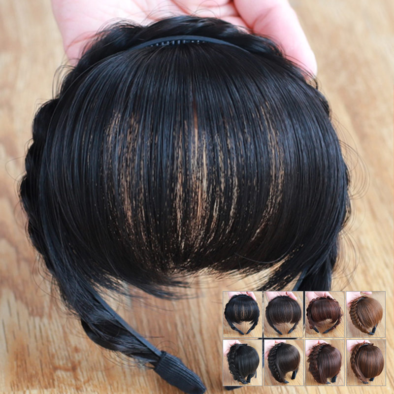 三つ編みカチューシャ付前髪ウィッグヘアバング 薄くて軽いシースルーバングとノーマルぱっつん前髪の2種類を選べる