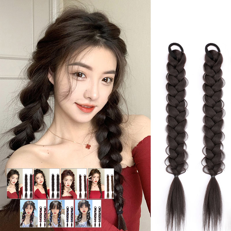三つ編みウィッグ 三つ編みバンド ヘアゴム 女性 ウィッグ ヘアアクセサリー ハーフウィッグ ワンタッチ エクステ 前髪ウィッグ ポニーテール