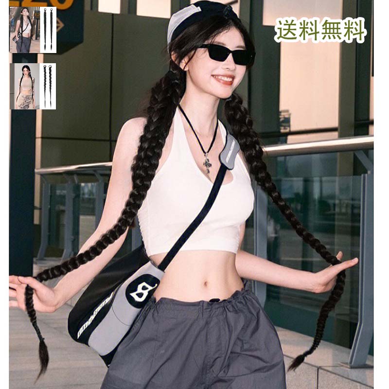 三つ編みウィッグ 三つ編みバンド 2本セット 女性 ウィッグ ヘアアクセサリー ハーフウィッグ ワンタッチ エクステ