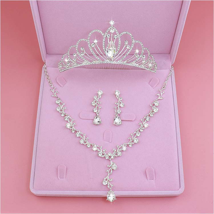 ヘアアクセサリー ウエディング 髪飾り 3点セット 5 ブライダル 花嫁用 王冠 ティアラ ネックレス イヤリング ピアス 結婚式 イベント コスプレ 舞台道具
