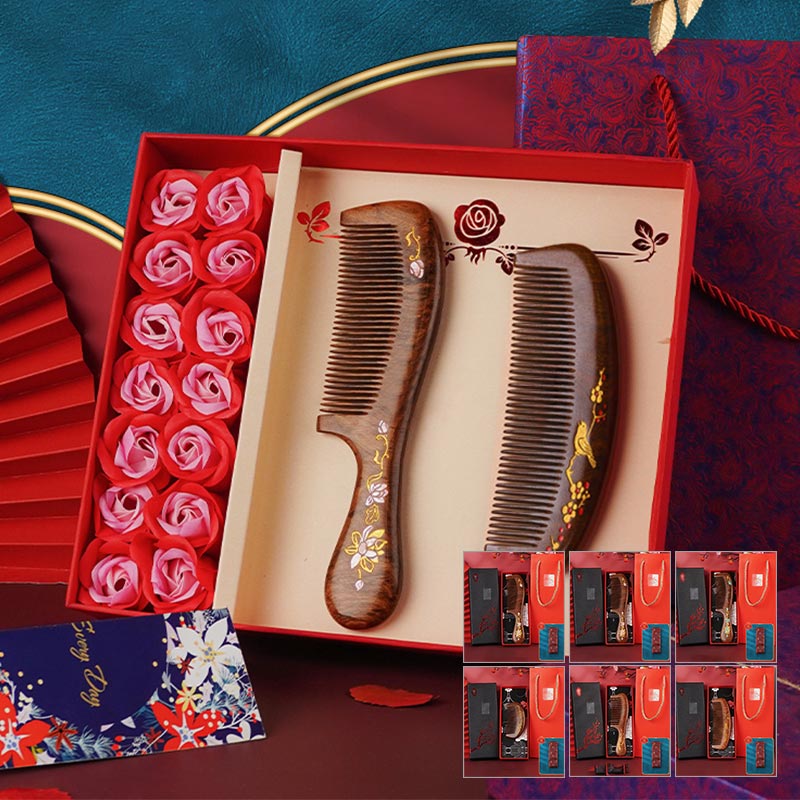 天然檀木 母の日 誕生日 縁起 高品質 耐久性 コンパクト 携帯用美容 コスメ 香水 ヘアケア スタイリング ブラシ くし