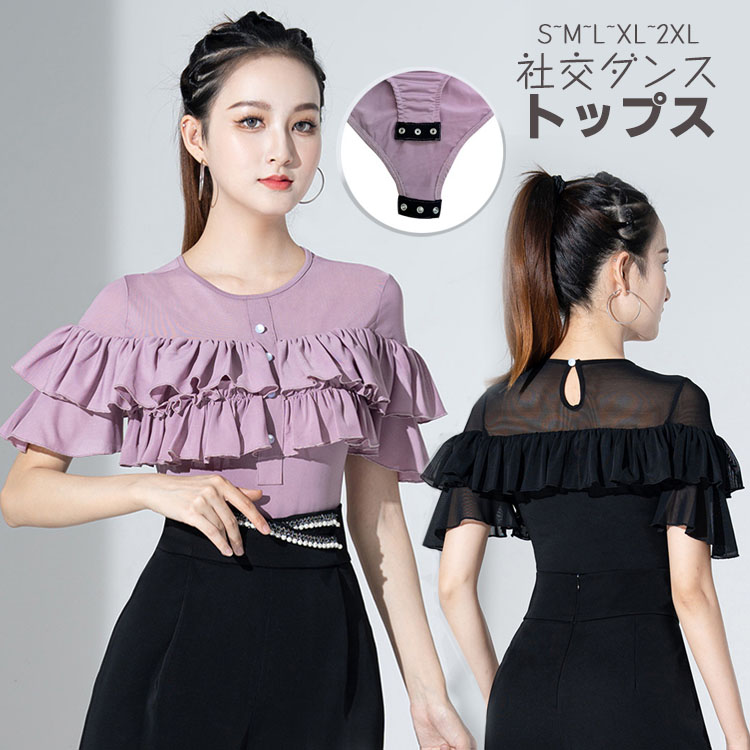 ダンス衣装 ダンス 衣装 入門ステップ トップス レディース用社交ダンス トップス ブラック パープル フラダンス S M L XL 2XL 3XL