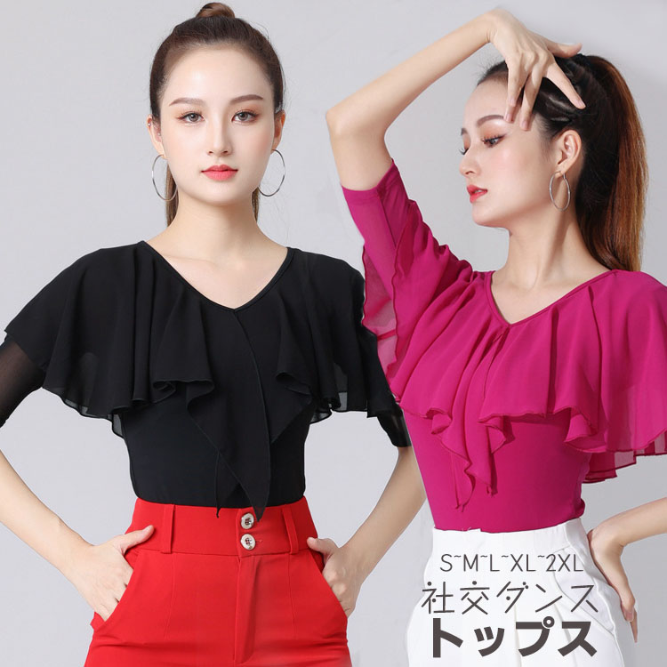 ダンス衣装 ダンス 衣装 入門ステップ トップス レディース用社交ダンス トップス レッド 赤 ネイビー ブラック パープル ブルー フラダンス S M L XL 2XL 3XL