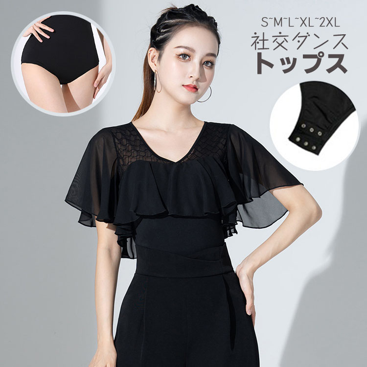 ダンス衣装 ダンス 衣装 入門ステップ トップス レディース用社交ダンス トップス ローズ ブラック S M L XL 2XL 3XL