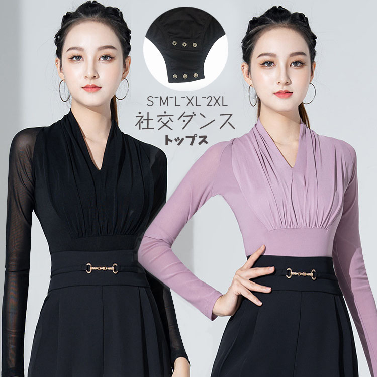 ダンス衣装 ダンス 衣装 入門ステップ トップス レディース用社交ダンス トップス ブラック パープル フラダンス 2 3