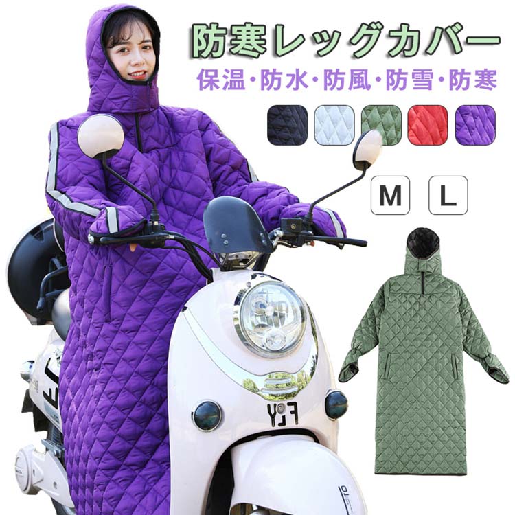 バイク スクーター 専用 男女兼用 レッグカバー オートバイ専用 バイク用 レッグカバー ホットレッグシールド 中綿 ロング丈 ポケット付き 全方位 中綿 フード 保温 防雪 防水 防風