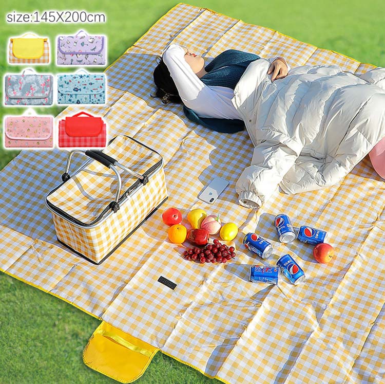 レジャーシート 子供 遠足 145*200 1人用 北欧風 野外 子供 遠足 軽量 折りたたみ 1人用 2人用 大きい チェック柄 コンパクト かわいい 運動会 ピクニックマット 大判
