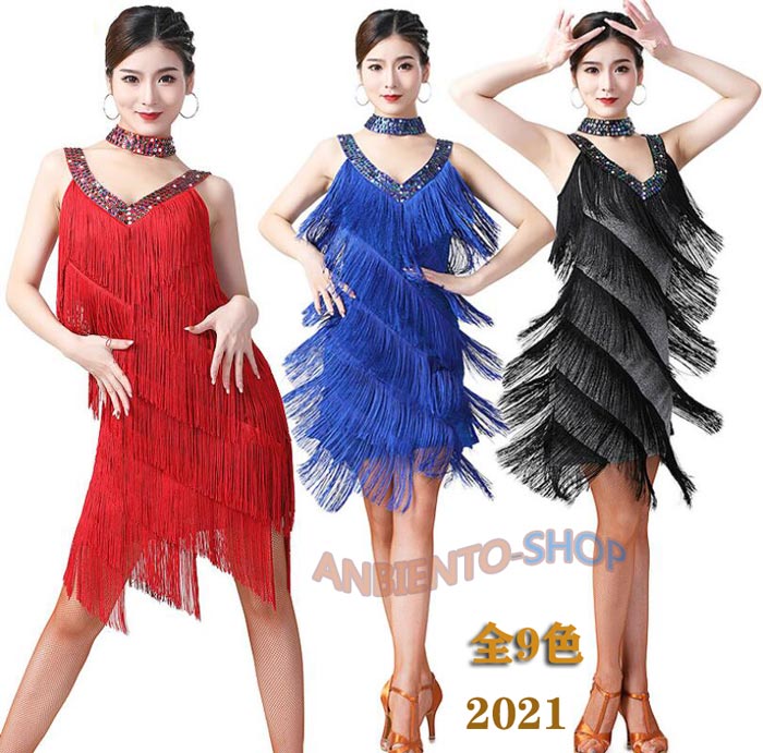 ラテンドレス スパンコール ワンピース セクシー フリンジタイプ 人気 ワンピース ダンス衣装 ワンピース