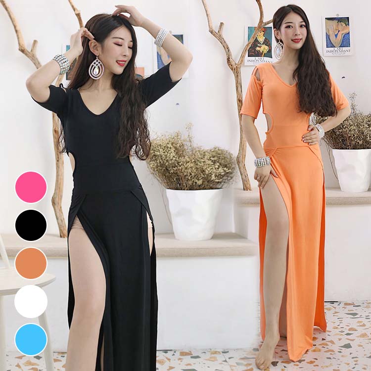 2021新作 ベリー ダンス衣装 レッスン着 レッスンウェア 五分袖 ベリーダンス衣装 ヨガウェア セクシー ワンピンス ロングスカート シンプル ダンスワンピ