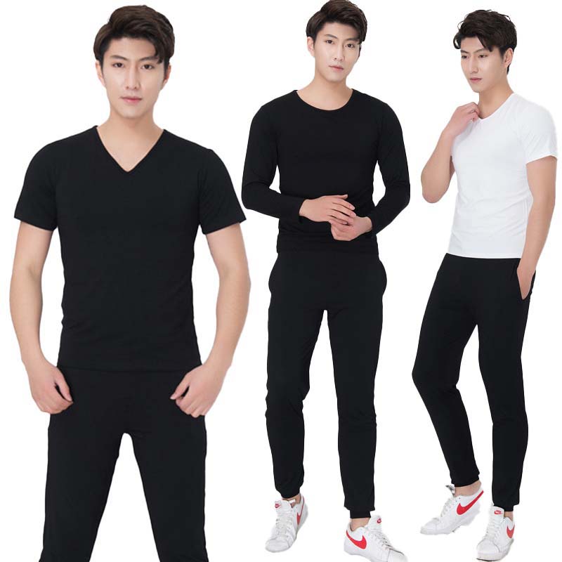 部屋着 上下二点セット 男性用ストレッチダンスウエア 長袖半袖+ロングパンツ 社交ダンス練習着レッスン着 メンズダンス衣装 白黒 体操服 ヨガ&古典ダンス衣装