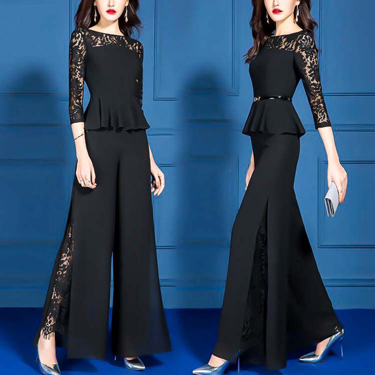 パンツドレス かっこいい セットアップ レディース パーティードレス パンツ 結婚式 お呼ばれ ドレス 袖あり ペプラム トップス 七分袖 黒 大きいサイズ きれいめ 3 4 韓国風