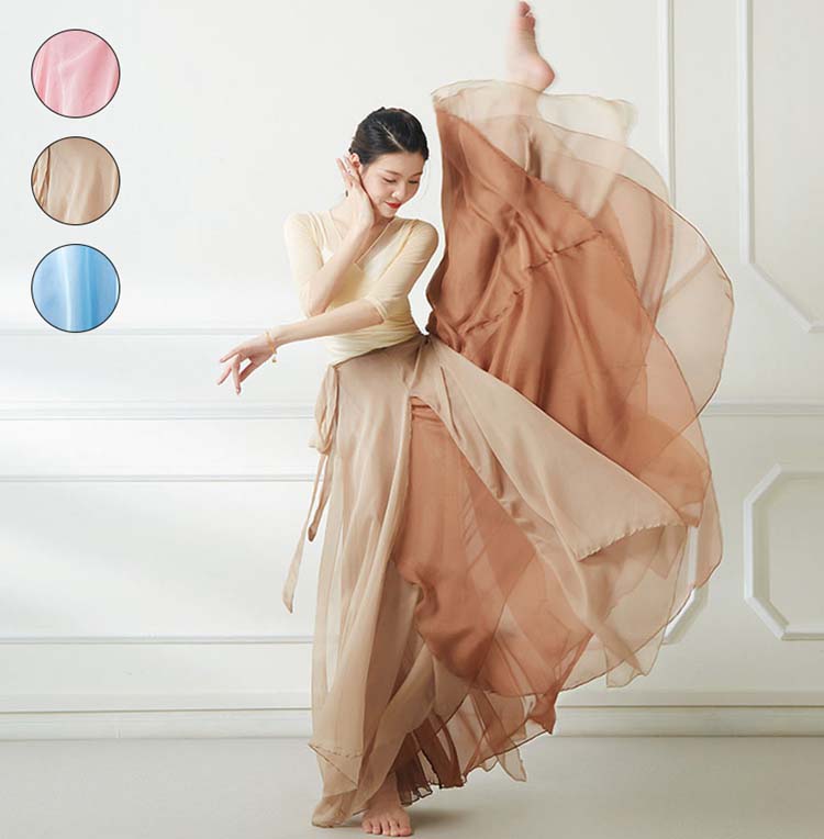 ダンススカート ダンス 広がるスカート レッスン着 エレガント 広がる720° 配色 衣装 飄逸 90 バイカラー 練習着 古典ダンス 民族ダンス 85 8つスリット 巻きスカート 大きい裾