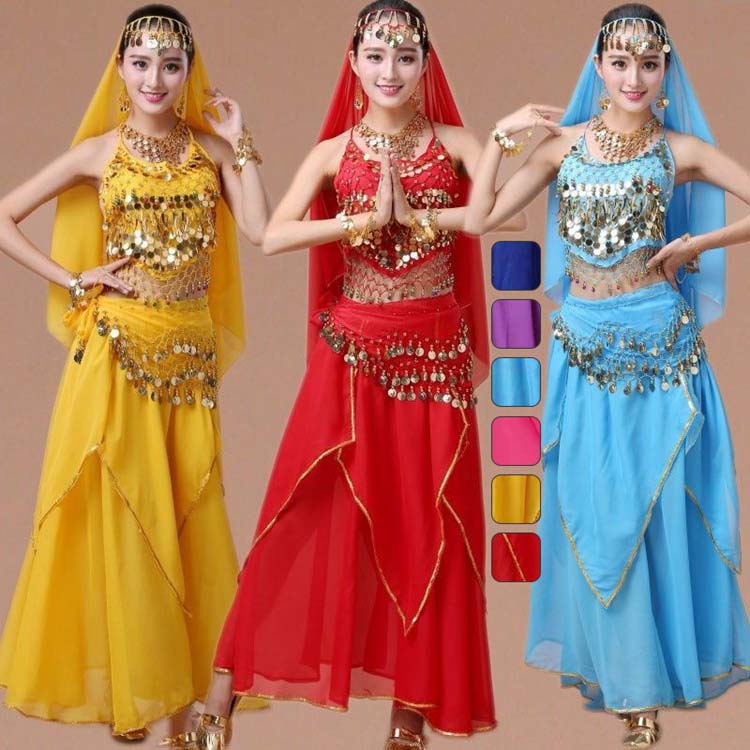ダンス衣装 上下セット レディース ベリーダンス衣装 4点セット ベリーダンス衣装 ベール ヘッドドレス コスプレ衣装 ベリーダンス ヒップスカーフ ダンス衣装 コスチューム