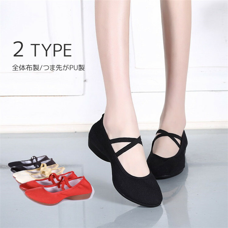 シューズ フォークダンス ダンスシューズ モダンダンス キャラクターシューズ 大人 レディース フラダンス 演奏 合唱 練習用 レッスン 低いヒール 布製 PU ベージュ レッド ブラック wudao