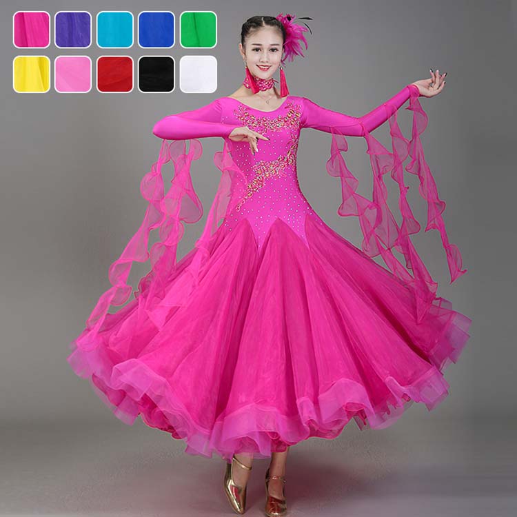 スパンコールワルツ 髪飾り+イヤリング付 豪華キラキラ舞台ステージ衣装 競技用舞台演出ロングドレス レッスン着 イベント演出服 パーティドレス ラテンタンゴ社交ダンスドレス