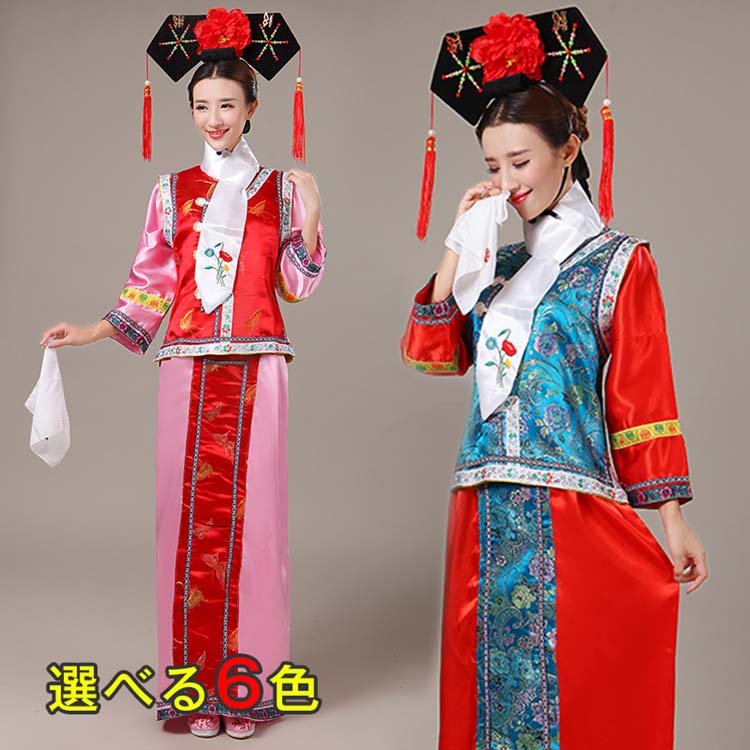 中国古代宮廷風コスプレ衣装 6色 清朝王妃皇女服 唐装 漢服 中華チャイナドレス女性用 キッズ用撮影舞台ステージ衣装 親子ペア髪飾り付き 華流ダンス衣装 コスプレ衣装
