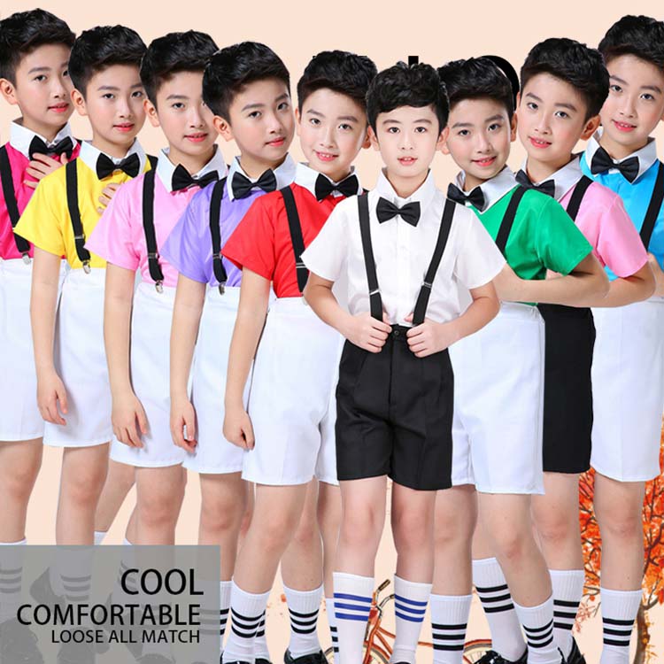 イギリス風半袖ワイシャツ+ショートパンツ二点セットアップ 舞台ダンス衣装 可愛い子供ジュニアスーツセット 100―180cm 夏人気子供学園制服