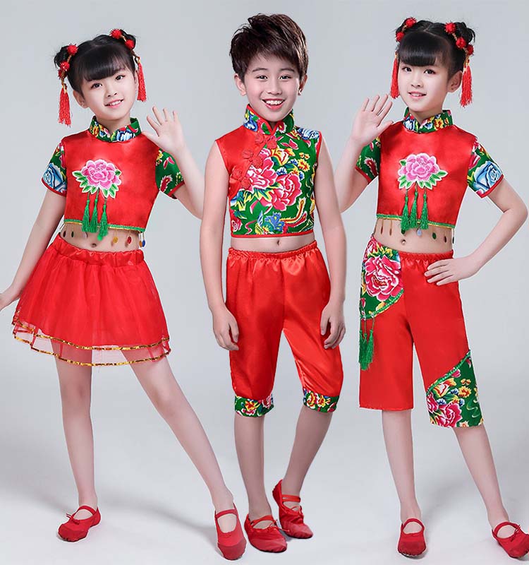 赤系 上下セット カンフー衣装 女の子 中国民族風ダンスウェア 100cm~160cm 中華服 発表会ダンスウェア キッズ 中華風舞台ステージ衣装 子供ダンス衣装 男の子