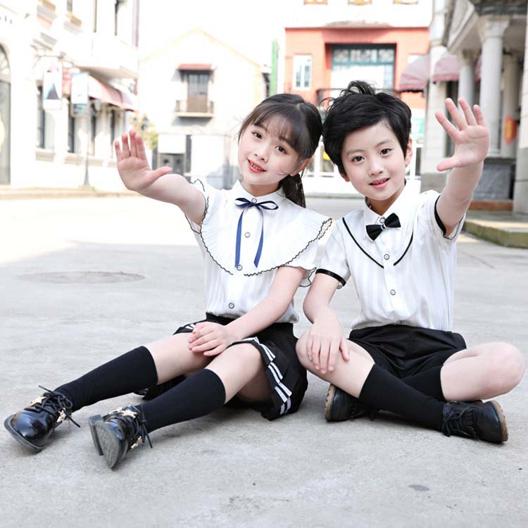 イギリス風半袖ワイシャツ+ショートパンツ二点セットアップ 舞台ダンス衣装 可愛い子供ジュニアスーツセット 100―180 夏人気子供学園制服