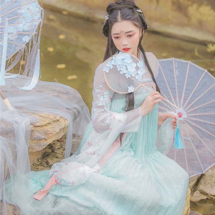 水色可愛い漢服唐装 飄逸な古典ダンス衣装 宮廷お姫系仮装 華流ステージ舞台衣装 精巧な花柄刺繍 チャイナ風中華ドレス 中国風古代古典衣装 とても清新なチャイナドレス