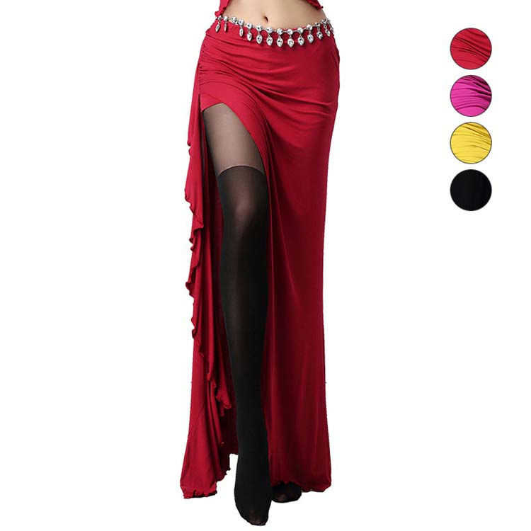 ロングスカート ラテン 4色 スリット入 バレエ 無地 ワタリ広がるダンス衣装 レッスン着 大人ベリーダンススカート 古典ダンス衣装 舞台ステージ演出服 ヨガ ストレッチ素材 ボトムス