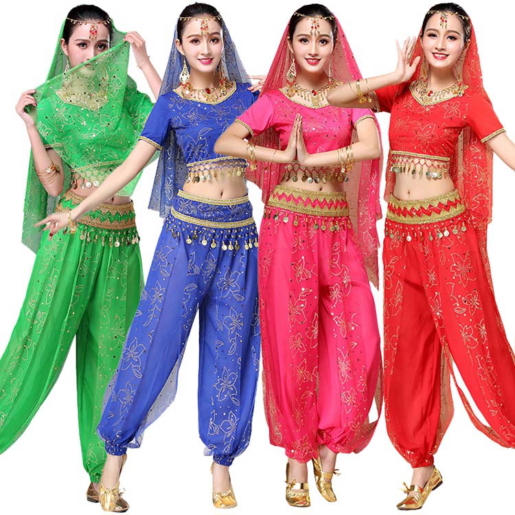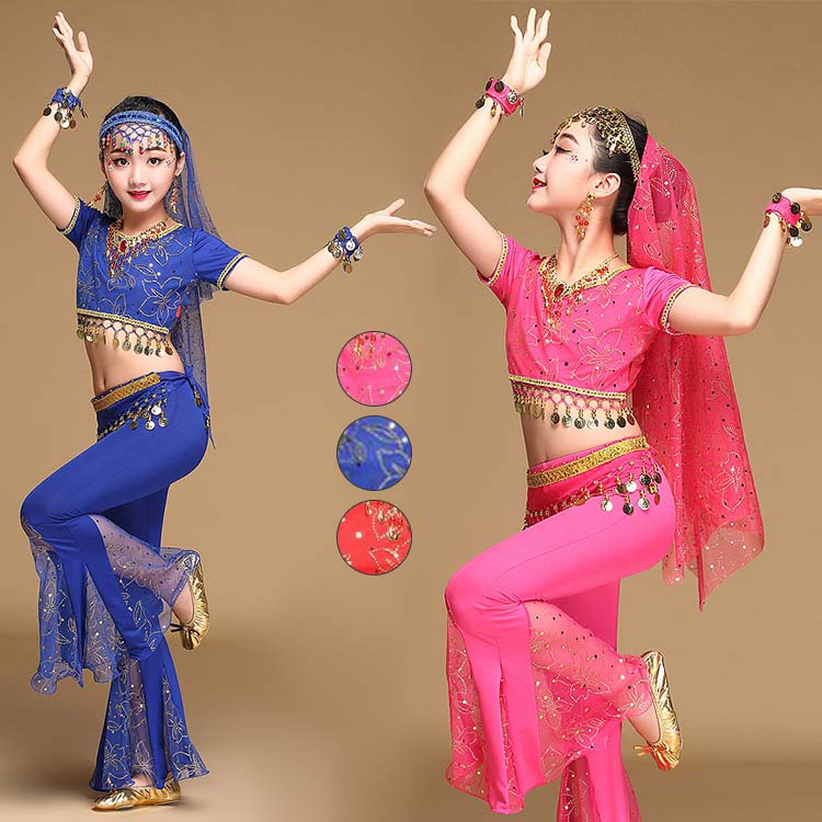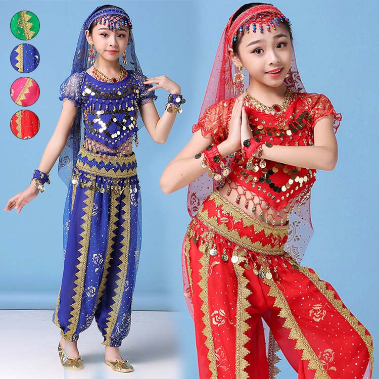 イヤリング ヨガ 4色 団体舞台演出衣装 スパンコールベリーダンス衣装3点セット セット内容選択可 レッスン着 ブレスレット 長パンツ ベール 子供ベリーダンス衣装 スカーフ 髪飾り