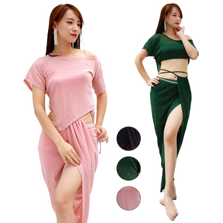 大人 社交ダンス スカーフ ダンスウェア Belly セット dance 半袖 ロングスカート 美シルエットセクシー系 独自デザイン シースルー 新作 ラインストーン 練習着 レディース
