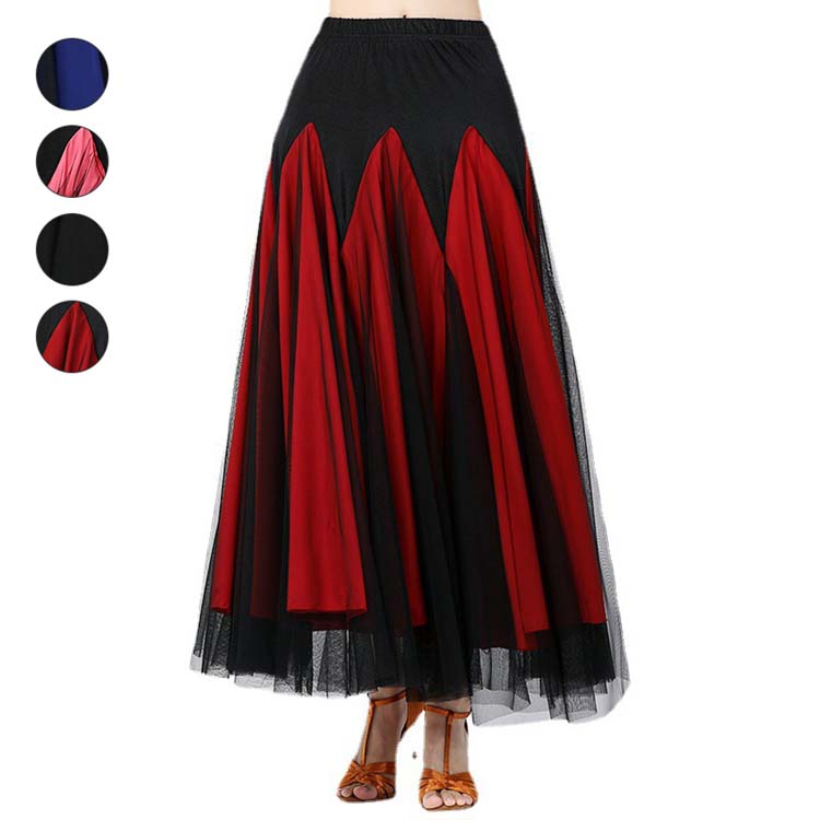 大きい裾 チュール 練習着 ピンク黒 XL 青黒 広がる 黒 ダンススカート スカート 社交ダンス ワルツ 赤黒 レッスン着 レディース モダンドレス ドレス 配色 ロング丈 ラテンダンス