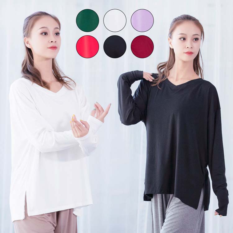 春秋冬ダンス衣装 レディース大人Vネックドルマンブラウス 長袖トップス ストレッチ練習着レッスン着 無地 トレーナー バレエダンス衣装 普段着 肌触り良い ヨガウエア