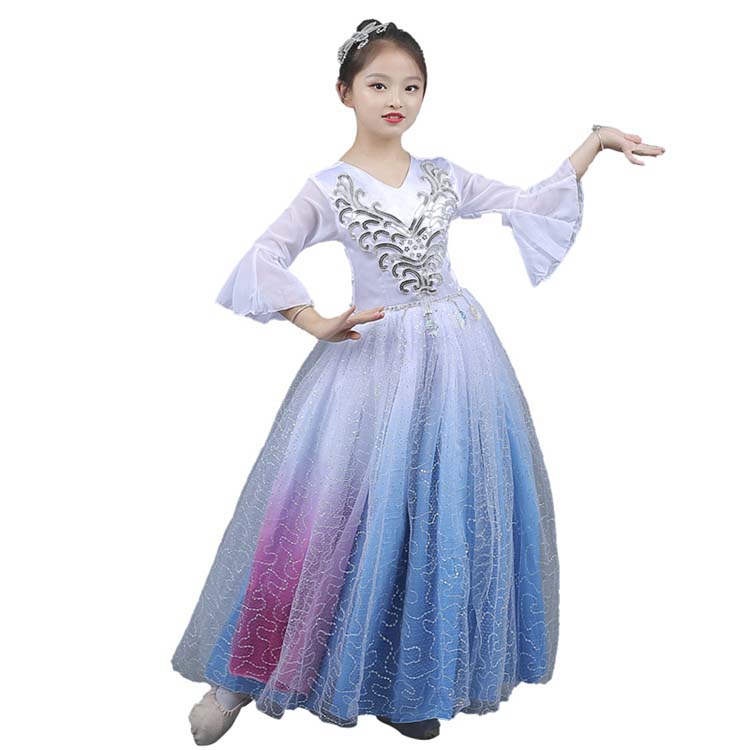 チュール 女の子バレエドレス 白青ピンクグラデーションモダンドレス イベント スパコール舞台ダンス演出服 古典ダンス衣装 子供ダンス衣装 華やか 社交ダンスドレス 発表会ダンス衣装